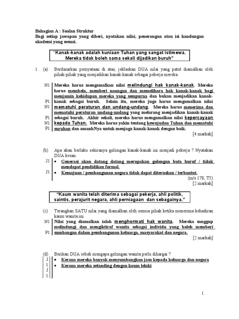 Pendidikan Moral Soalan Aras Rendah Bidang 5 Hak Asasi Manusia