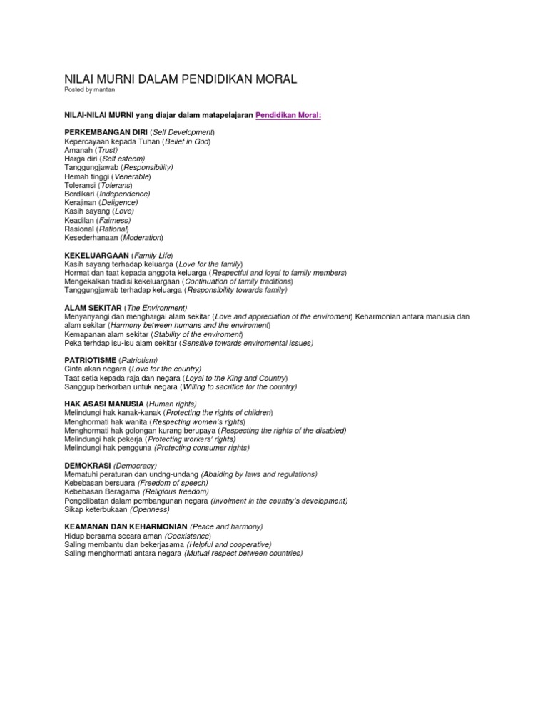 Nilai Murni Dalam Pendidikan Moral