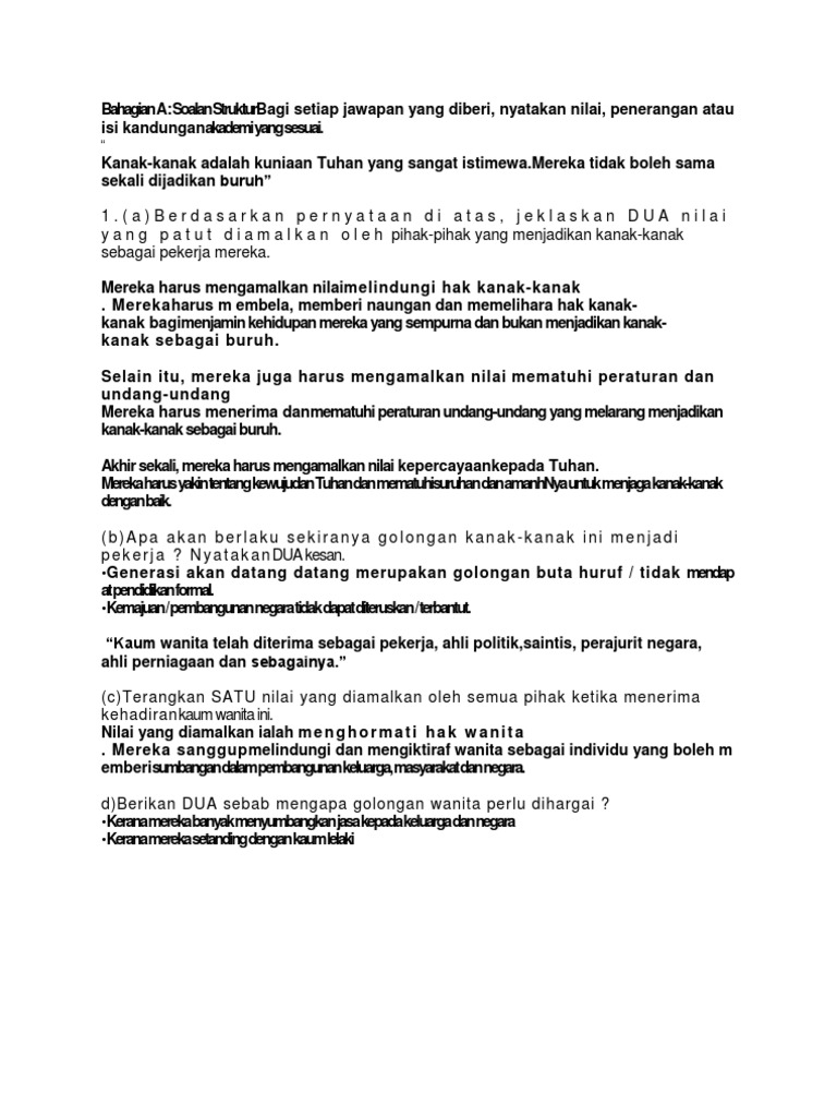 10 Latihan Jawapan Lengkap Soalan Moral
