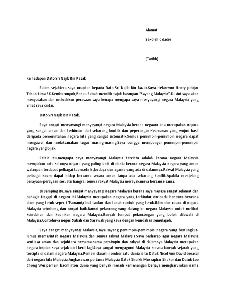 Contoh Karangan Jenis Surat Kiriman Tidak Rasmi