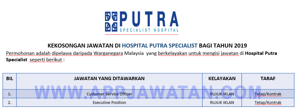 Jawatan Kosong Terkini Di Hospital Putra Specialist Appjawatan Malaysia