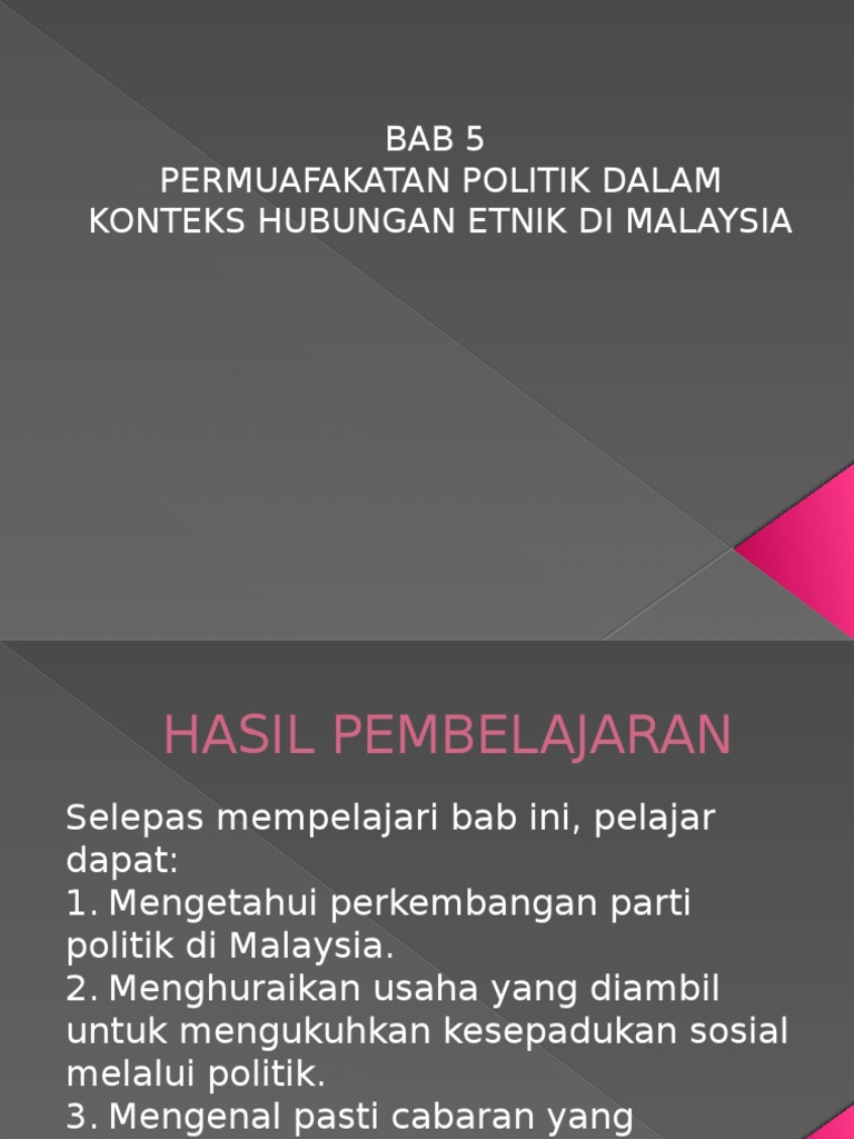 Bab 5 Permuafakatan Politik Dalam Konteks Hubungan Etnik Di Malaysia By Mrs Secret