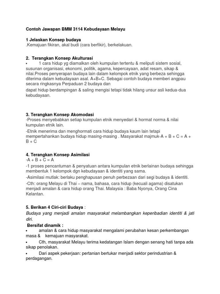 Contoh Jawapan Bmm 3114 Kebudayaan Melayu Docx