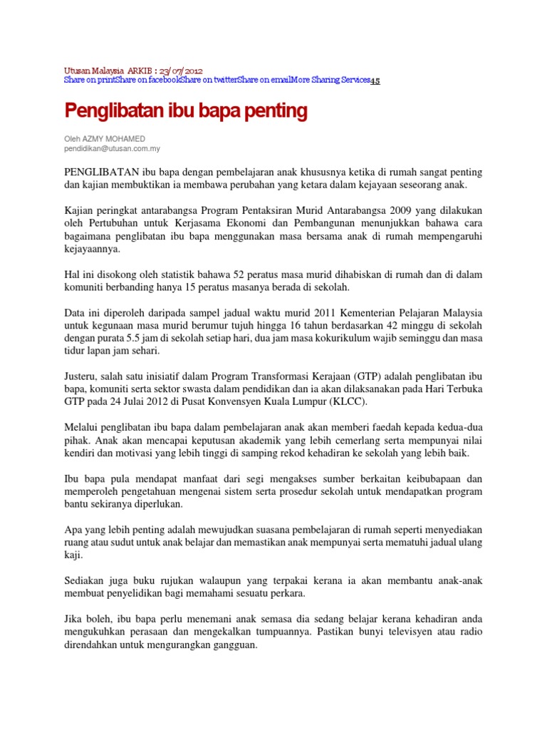 Keratan Akhbar Penglibatan Ibu Bapa
