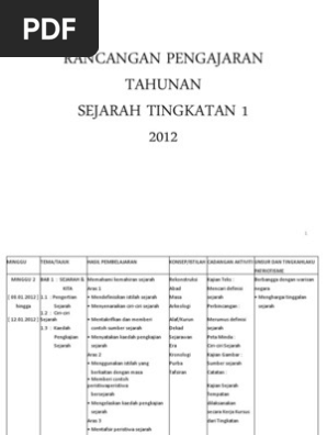 Rancangan Pengajaran Tahunan Sejarah Tingkatan 1