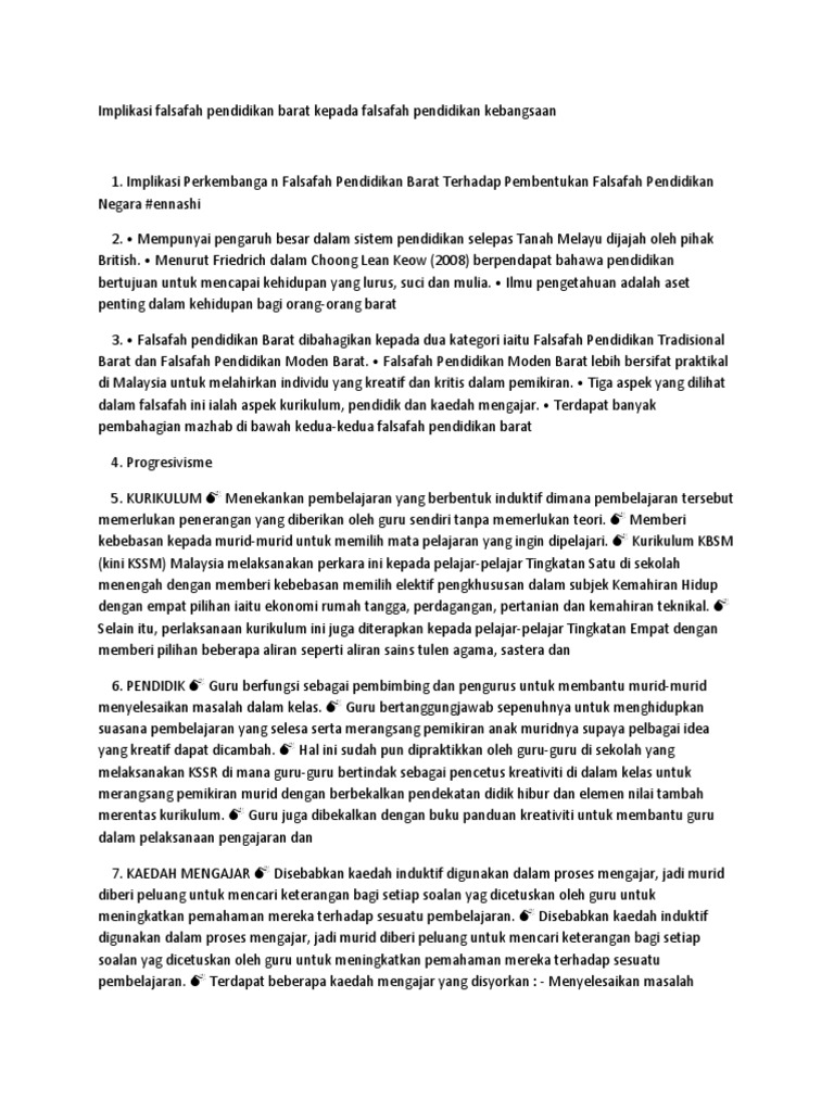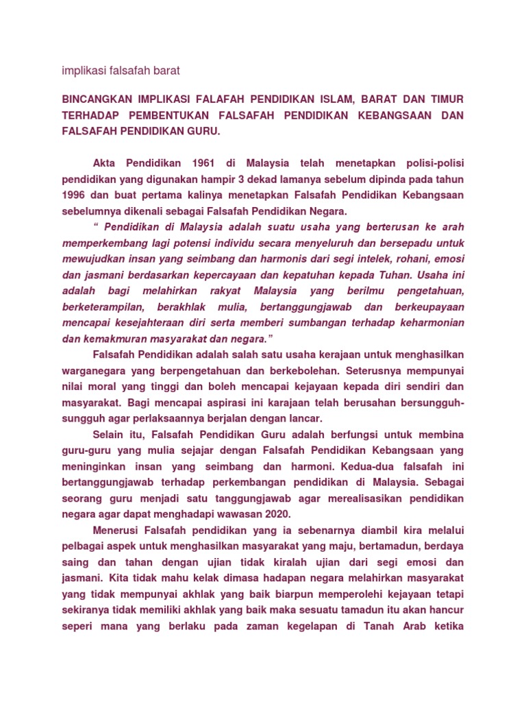 Pdf Implikasi Falsafah Barat Ke Atas Falsafah Pendidikan Kebangsaan Hasyimah Hashim Academia Edu