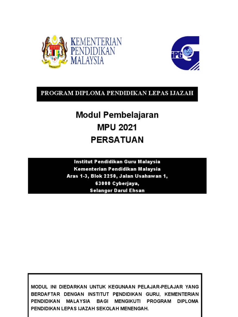 Modul Pembelajaran Mpu 2021 Persatuan Program Diploma Pendidikan Lepas Ijazah