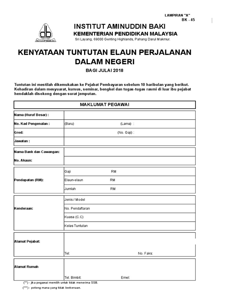 Panduan Dan Borang Tuntutan Perjalanan Sumber Pendidikan Panduan Tuntutan