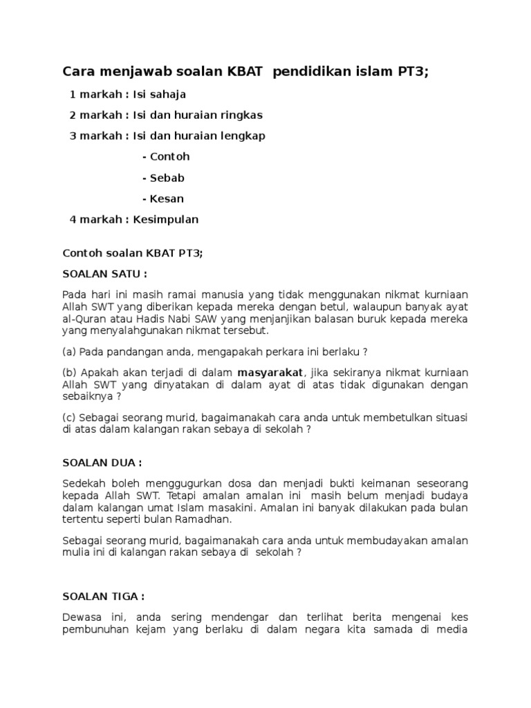 Cara Menjawab Soalan Kbat Pendidikan Islam Pt3