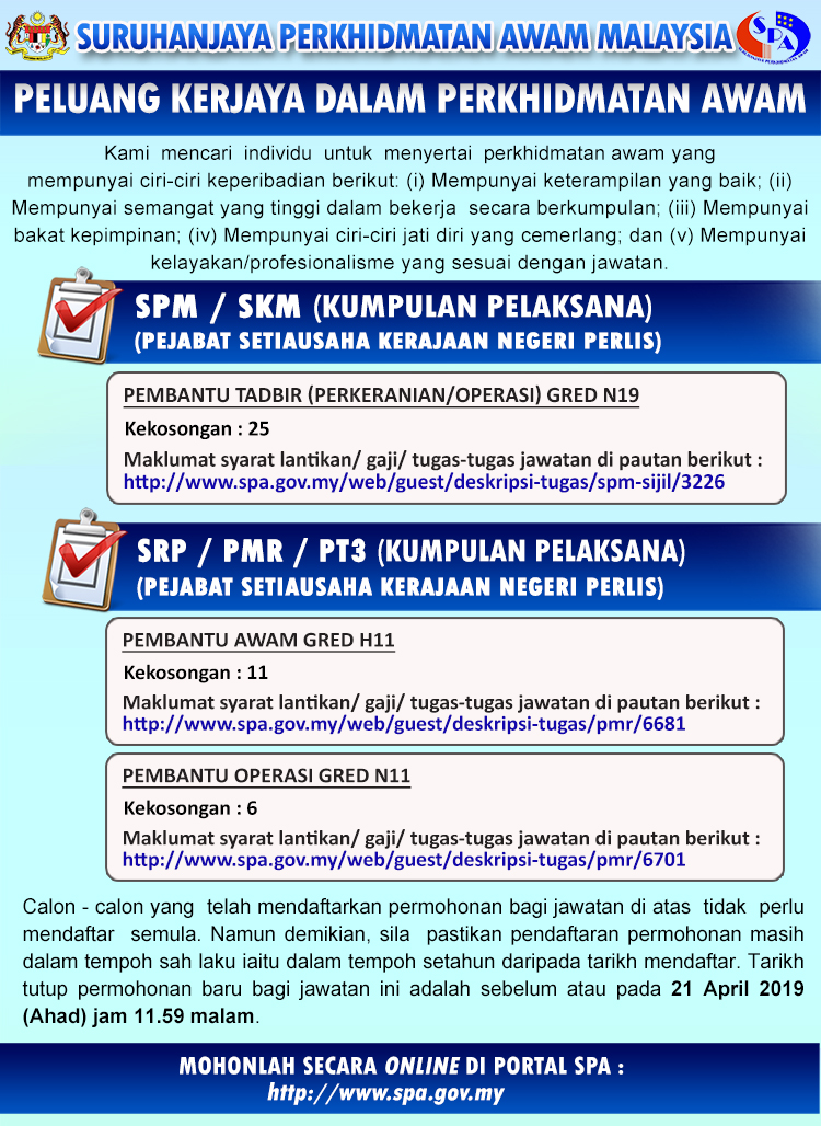 Jawatan Kosong Terkini Pejabat Setiausaha Kerajaan Negeri Perlis Tarikh Tutup 21 April 2019 Ejobskini Com Portal Jawatan Kosong Kerajaan Dan Swasta