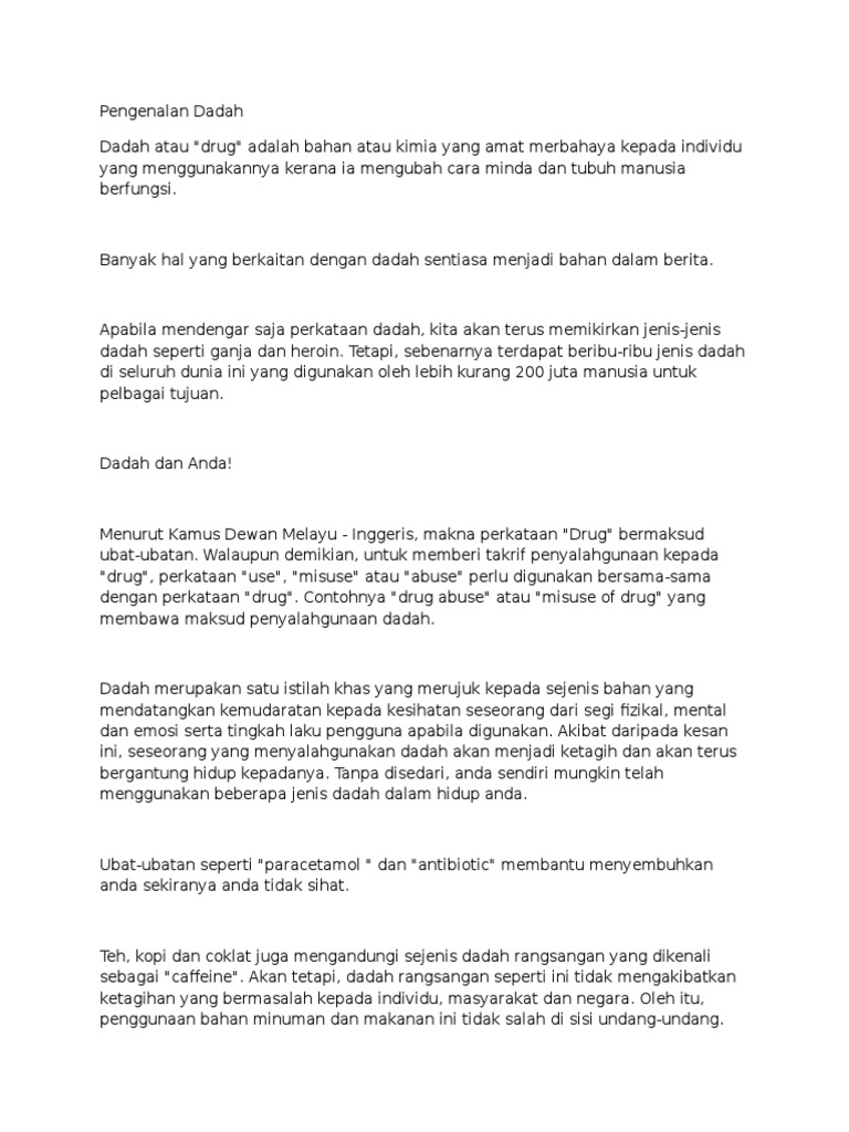 Jenis Dadah Dan Kesannya Pdf Document