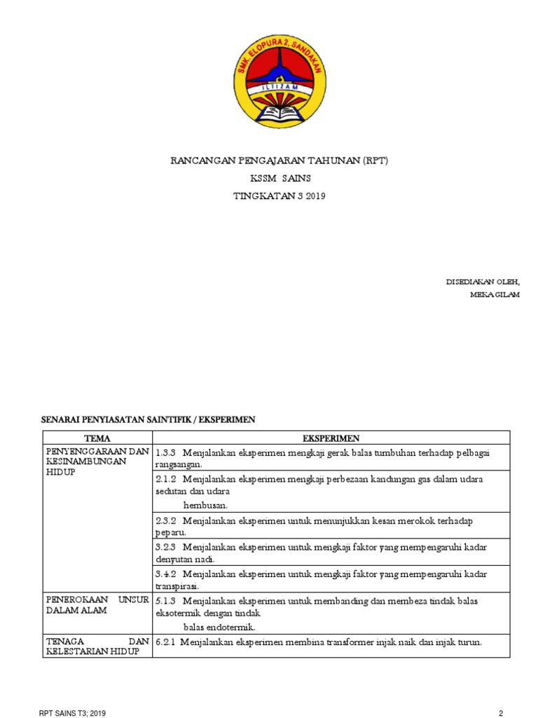 Rpt Sains T3 2019 Smk Paduka Tuan Sgmt