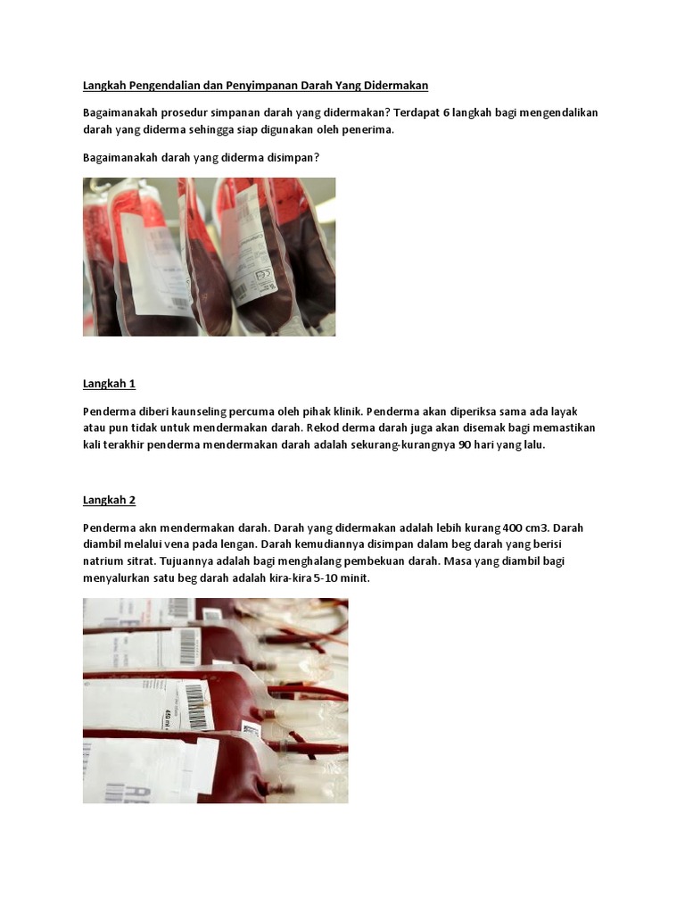 Bagaimanakah Prosedur Simpanan Darah Yang Didermakan