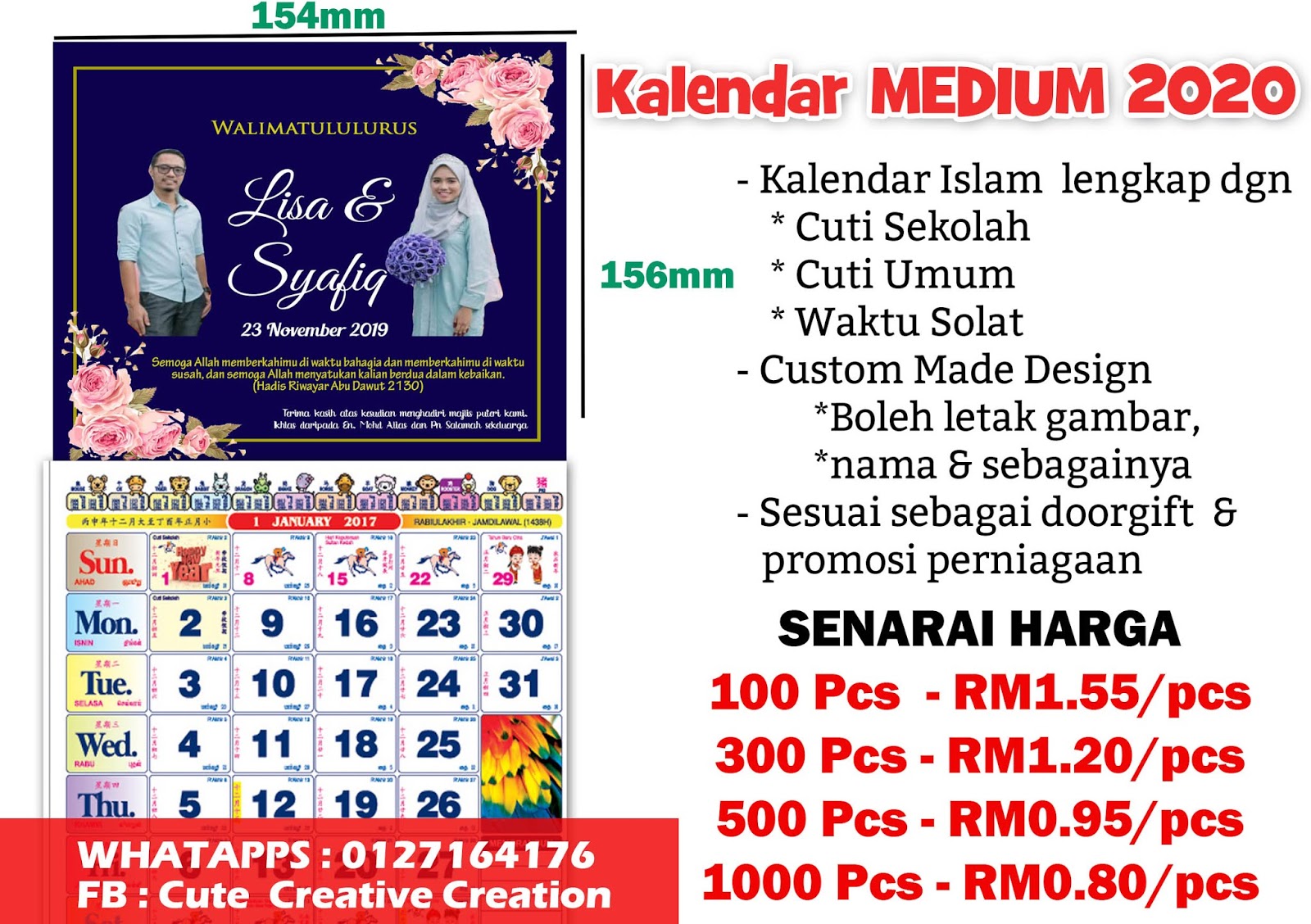 Cute Creative Creation Kalendar 2020 Jenis Kuda Islamik Bersize Mini Tempahan Sebagai Doorgift Majlis Perkahwinan
