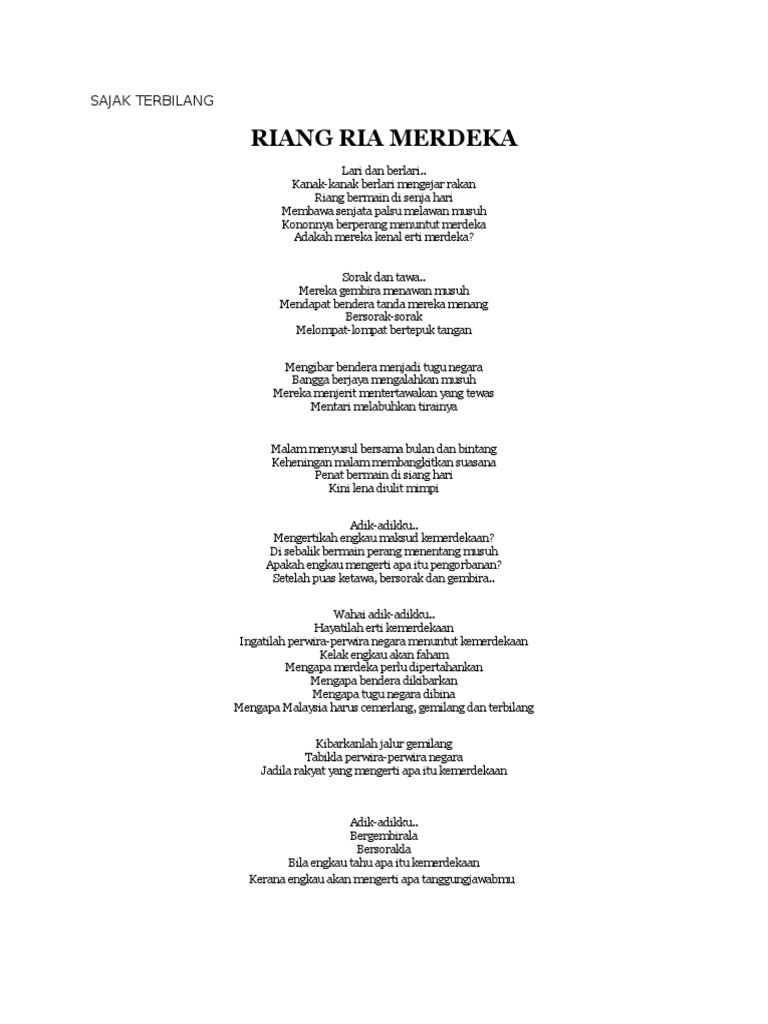Kanak Kanak Merdeka Sajak Kemerdekaan