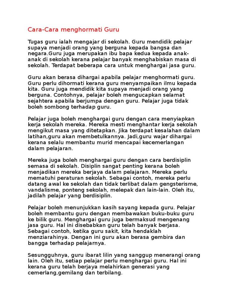 Karangan Cara Menghargai Jasa Guru Pdf Document