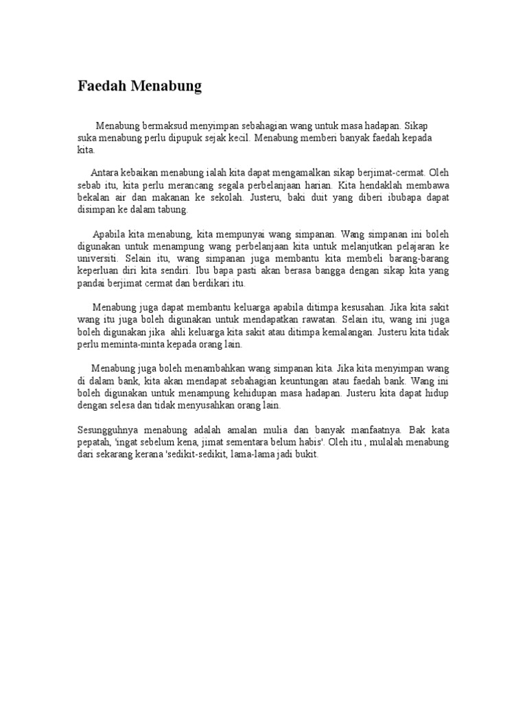 Karangan Faedah Menabung Dan Kebaikan Bersukan