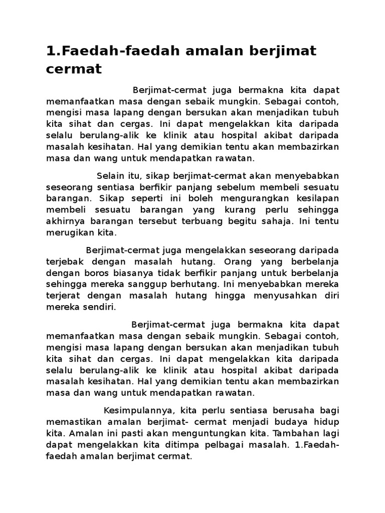 Doc Fakta Berjimat Cermat Amalan Mulia Norhazrina Mohamad Shari Academia Edu