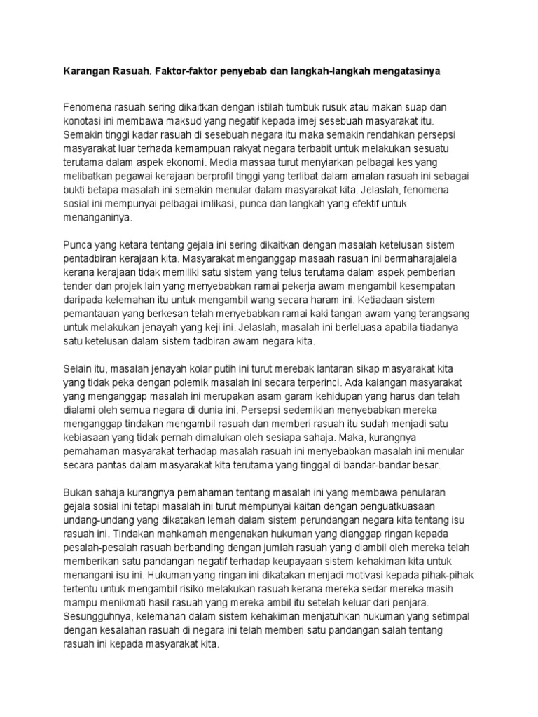 Contoh Karangan Bm Punca Punca Berlakunya Gejala Rasuah Dan Cara Cara Menanganinya Wattpad