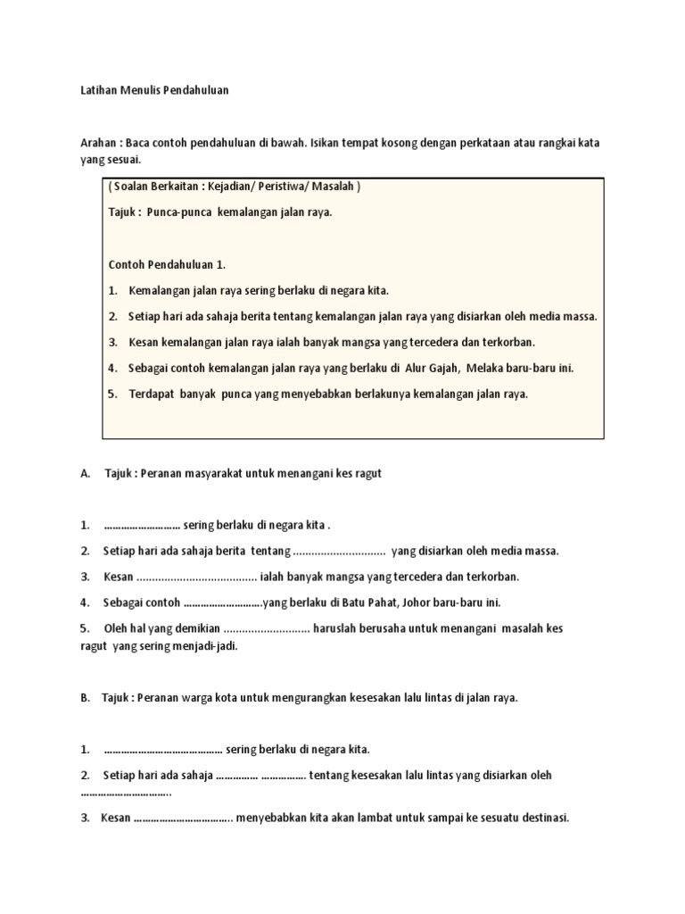 Latihan Menulis Pendahuluan Karangan Teknik Pasang Siap