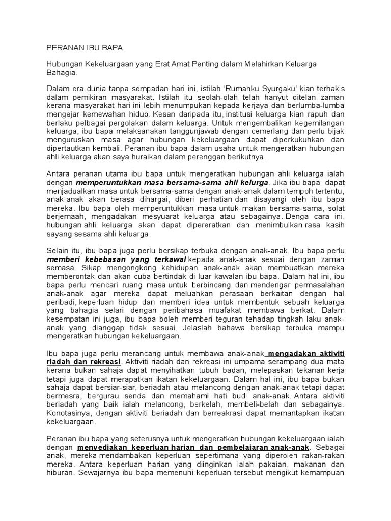 Karangan Peranan Ibu Bapa Dalam Membentuk Keluarga Bahagia