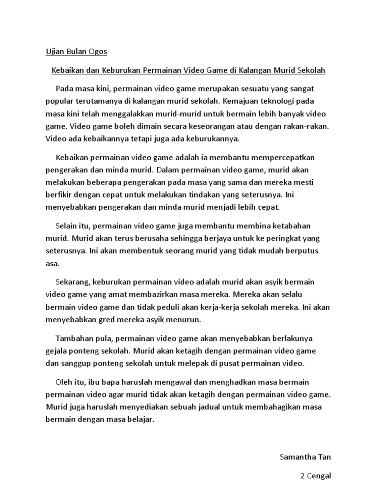 Kebaikan Dan Keburukan Permainan Video Game Di Kalangan Murid Sekolah