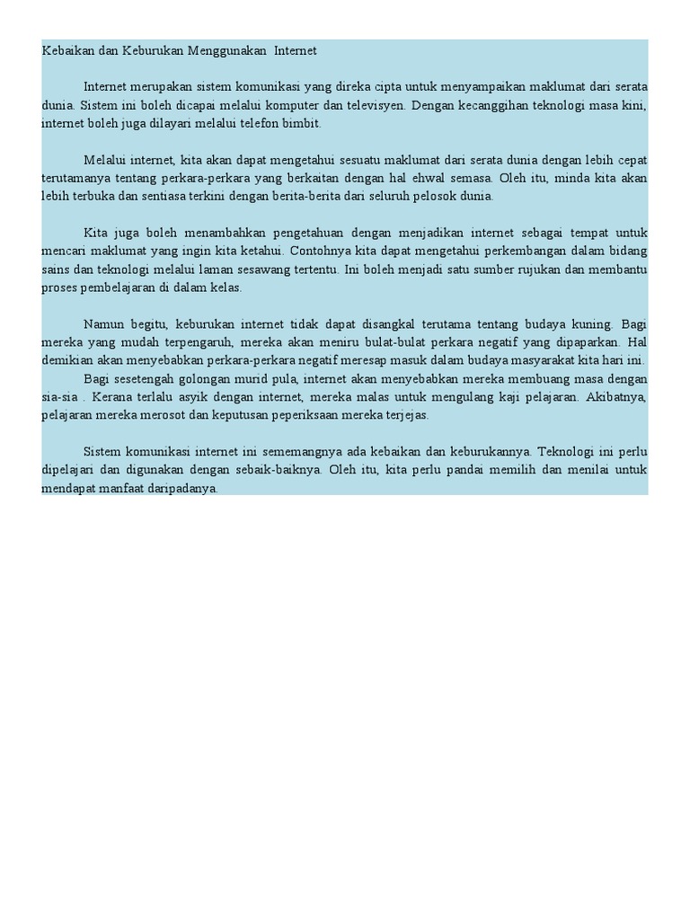 Karangan Perbahasan Terdapat Lebih Banyak Kebaikan Melayari Internet Berbanding Keburukan