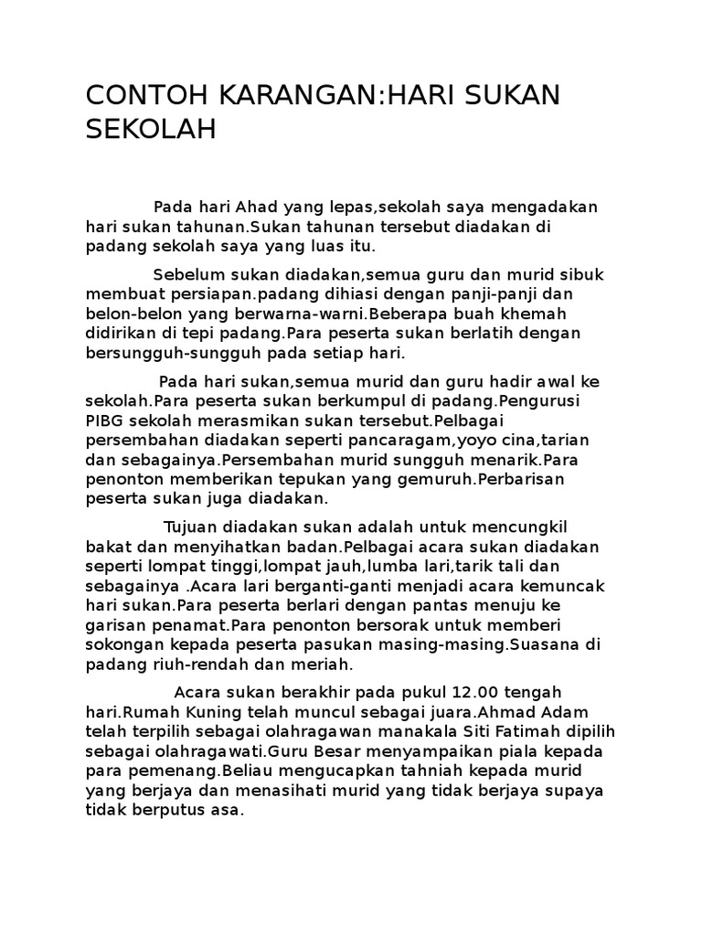 Bina Ayat Dan Ulasan Hari Sukan Dan Faedah Bersukan