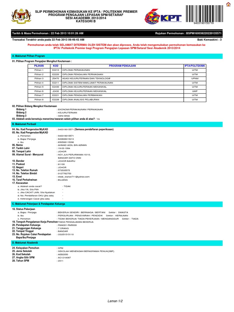 Kemaskini Permohonan Upu 2020 Online Semakan Upu