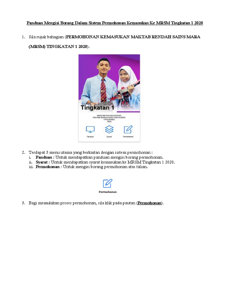 Permohonan Kemasukan Ke Mrsm Bagi Tingkatan 1 4 2021
