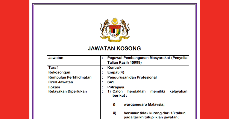 Jawatan Kosong Di Kementerian Pembangunan Wanita Keluarga Dan Masyarakat Kpwkm Jobcari Com Jawatan Kosong Terkini