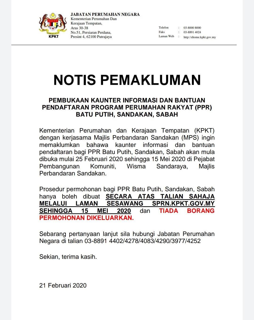 Jabatan Penerangan Negeri Sabah On Twitter Pendaftaran Ppr Batu Putih Sandakan Hanya Boleh Dibuat Secara Online Permohonan Ppr Batu Putih Sandakan Boleh Dibuat Secara Atas Talian On Line Melalui Laman Web