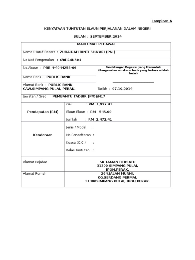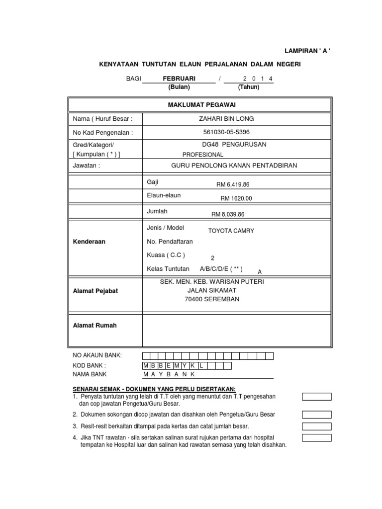 Contoh Borang Tuntutan Perjalanan Pdf Document