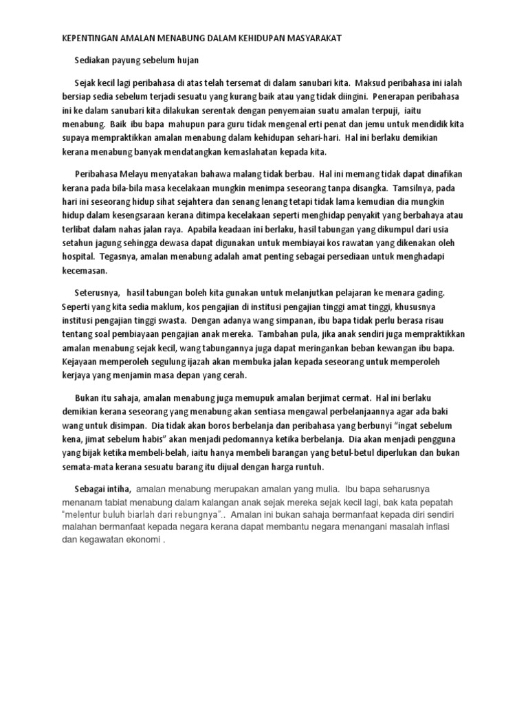 Contoh Karangan Faedah Faedah Amalan Berjimat Karangan Net