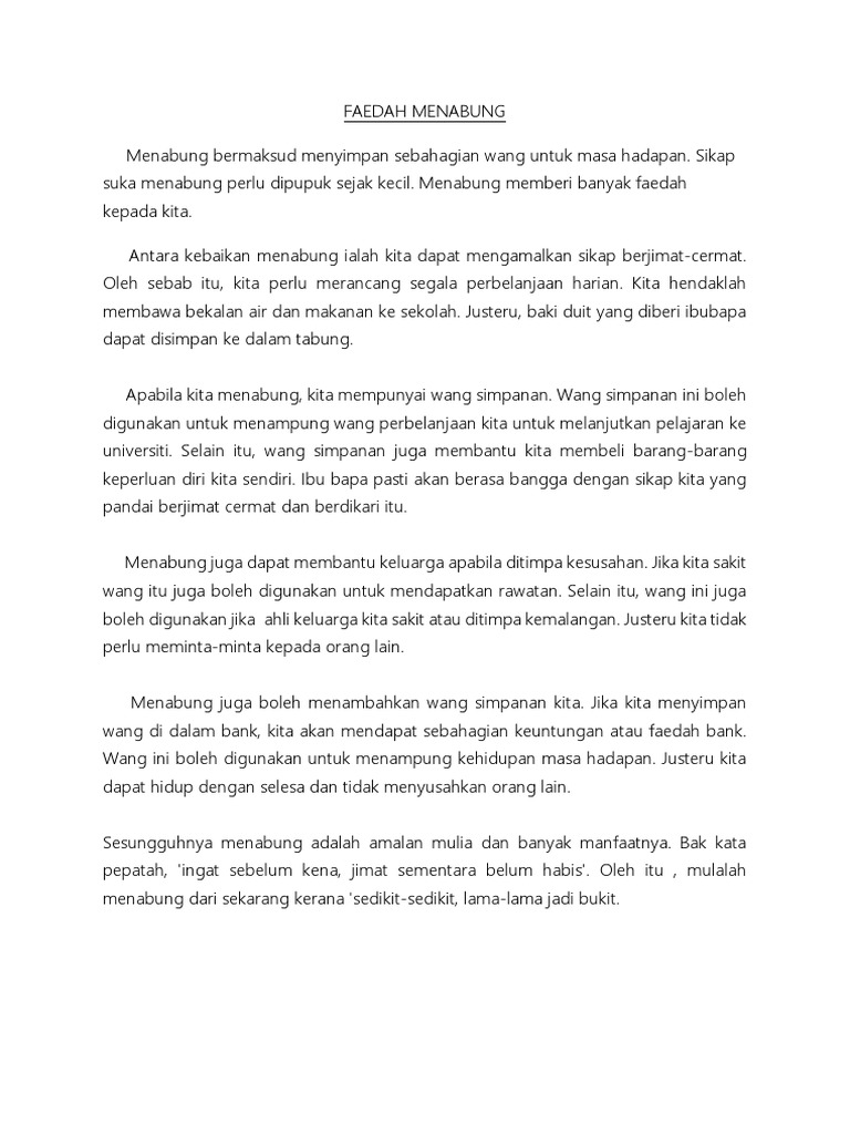 Karangan Faedah Menabung Dan Kebaikan Bersukan