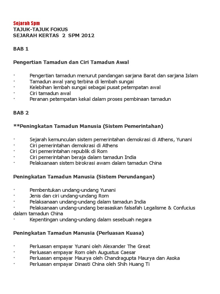 Tajuk Tajuk Fokus Sejarah Kertas 2 Spm 2012 Bab 1 Pengertian Tamadun Dan Ciri Tamadun Awal