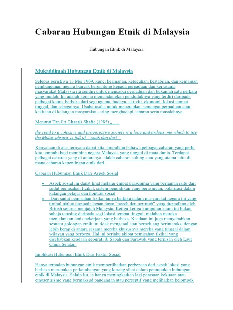 Kepentingan Hubungan Etnik Di Malaysia Docx Antara Kepentingan Kajian Hubungan Etnik Dalam Konteks Negara Malaysia Ialah Pertama Dari Segi Ekonomi