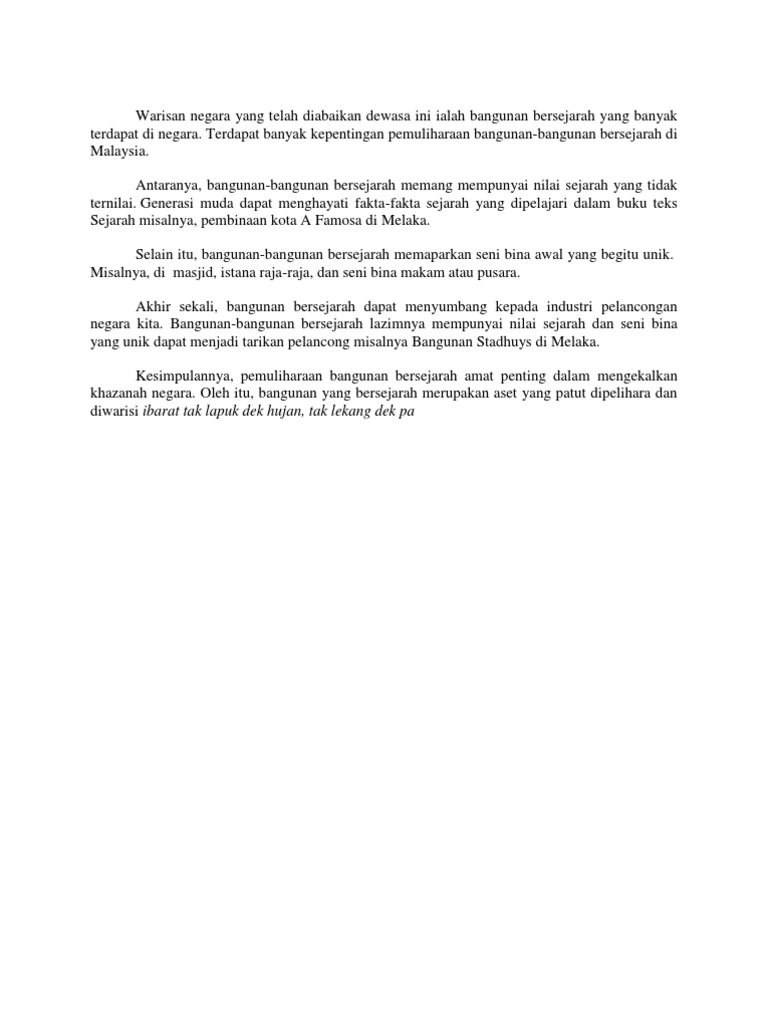 Karangan Spm Kepentingan Memelihara Dan Memulihara Bangunan Bangunan Bersejarah Di Negara Kita H A E Y B A