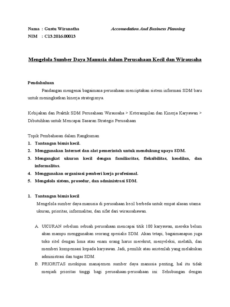 Tugas Rangkuman Pengelolaan Sdm Dalam Perusahaan Kecil Dan Wirausaha