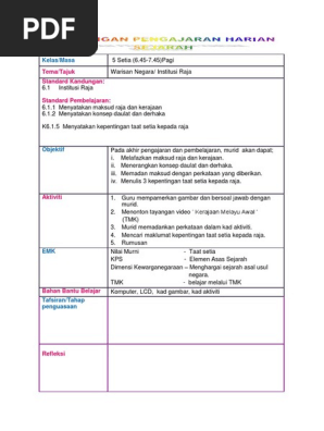 Rancangan Pelajaran Tahunan Sejarah Tahun 5 2018 K 6 1 5 Menyatakan Kepentingan Taat Setia Kepada Raja Objektif