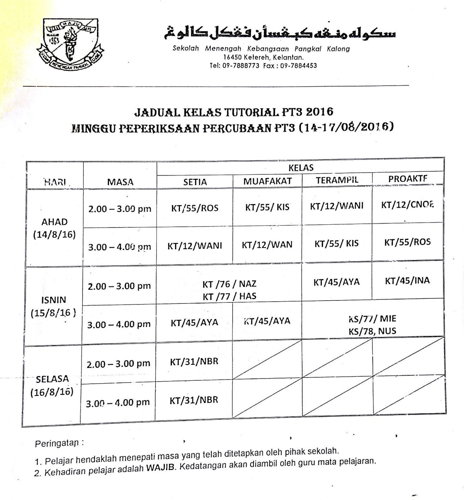 Kalongnet Blog Rasmi Smk Pangkal Kalong Kota Bharu Kelantan Kelas Tutorial Pt3 Dalam Minggu Peperiksaan Percubaan Pt3