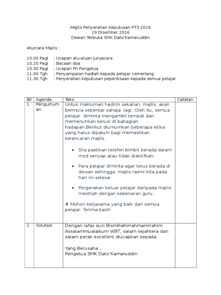 Teks Pengacara Majlis Penyerahan Slip Keputusan Pt3 2016 Doc