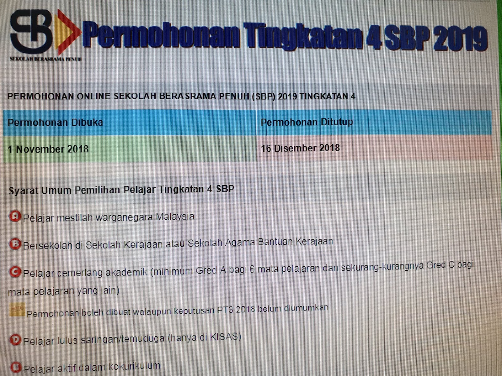 Permohonan Online Ke Tingkatan 4 Sekolah Berasrama Penuh Sbp Kpm Tahun 2018 Panduan Semakan Cute766