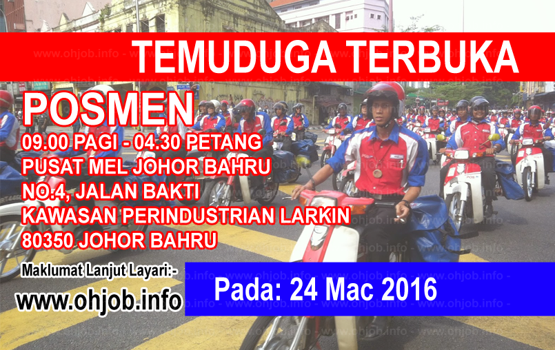 Temuduga Terbuka Pos Malaysia 2017 Johor Temuduga Terbuka Posmen Kurier Pos Malaysia 2017 Jawatan Kosong Terkini 2017 Pos Malaysia Temud Malaysia Johor Pos