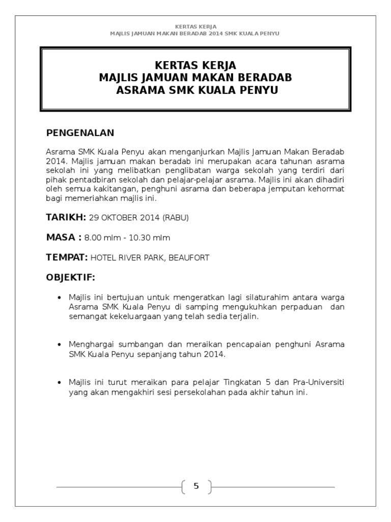 Contoh Kertas Kerja Jamuan Makan Malam Kerkoso