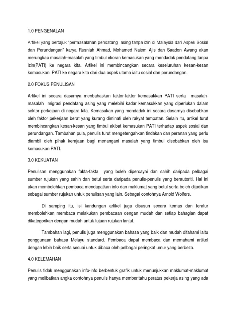 Kesan Kesan Pendatang Asing Isu Pendatang Asing Di Malaysia Sememangnya Sudah Lama Diperkatakan Dan Digembar Gemburkan Ole Essay Examples Case Study Essay