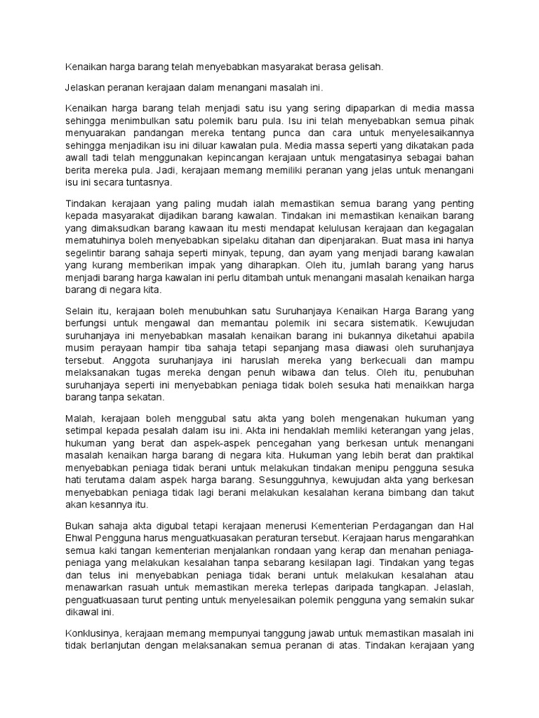 Karangan Punca Dan Kesan Kenaikan Harga Barang Docx