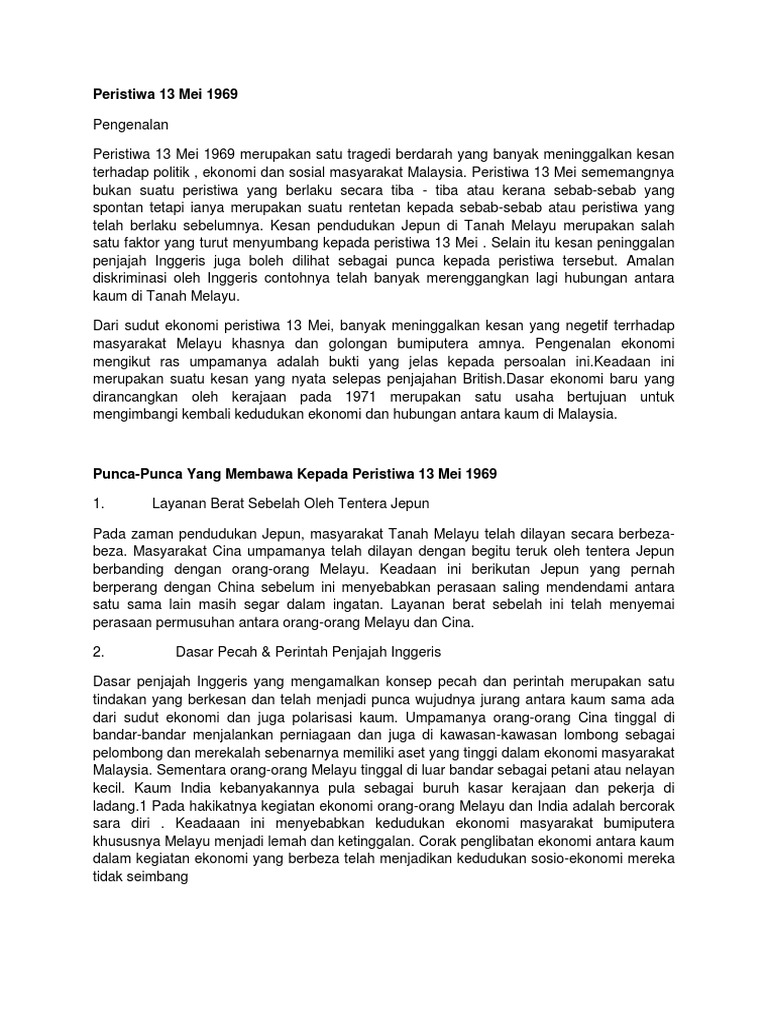 Kepentingan Hubungan Etnik Kesan Peristiwa 13 Mei 1969 Docx Document