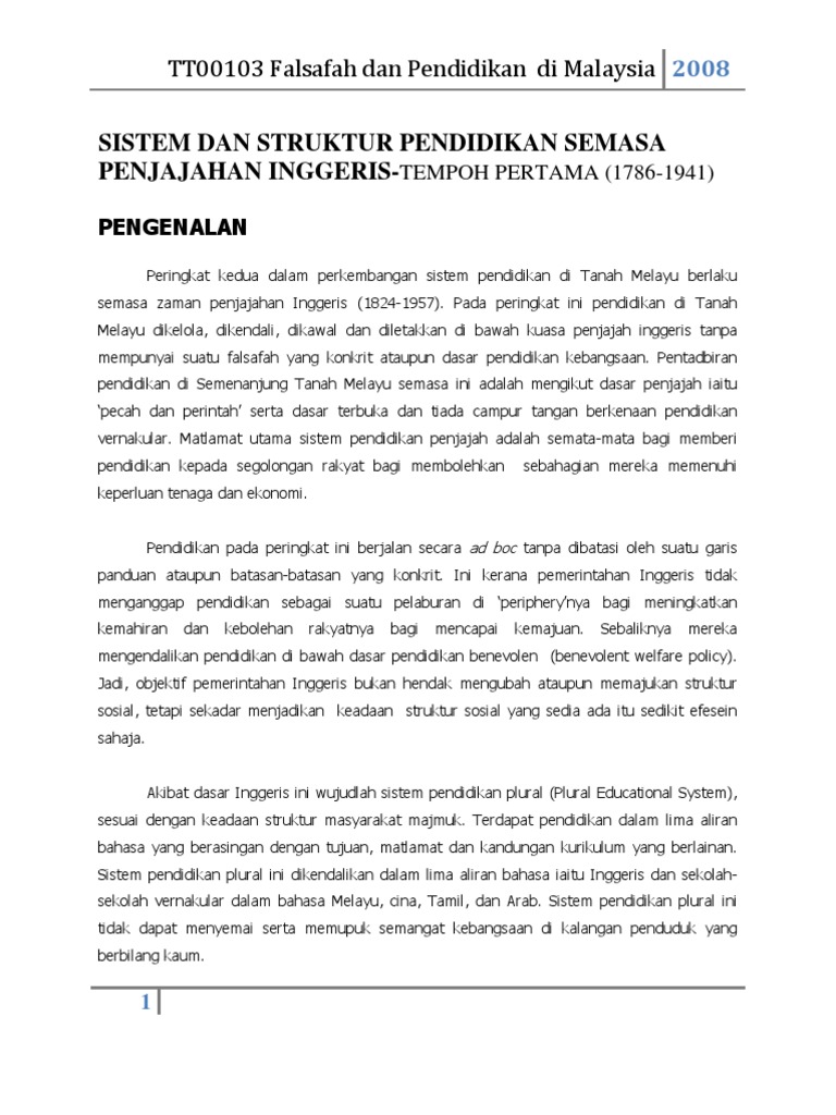 Doc System Pendidikan Malaysia Sebelum Merdeka Kong Xiang Sam Academia Edu