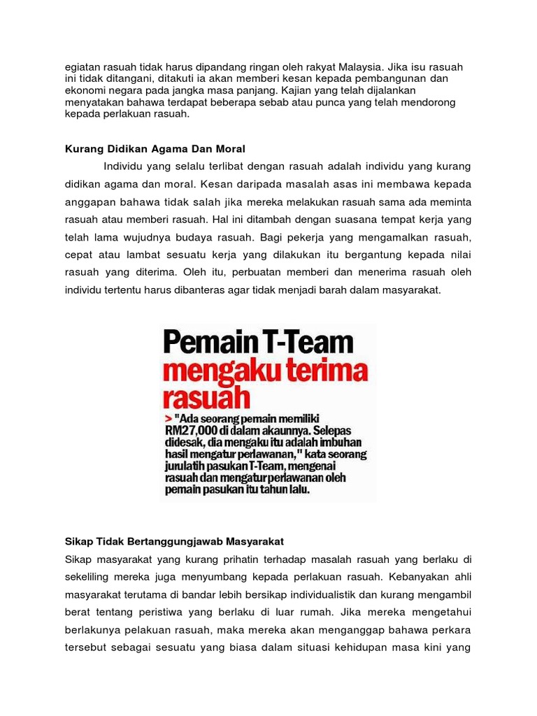 Gejala Rasuah Maksud Punca Kesan Negatif Dan Cara Menanganinya